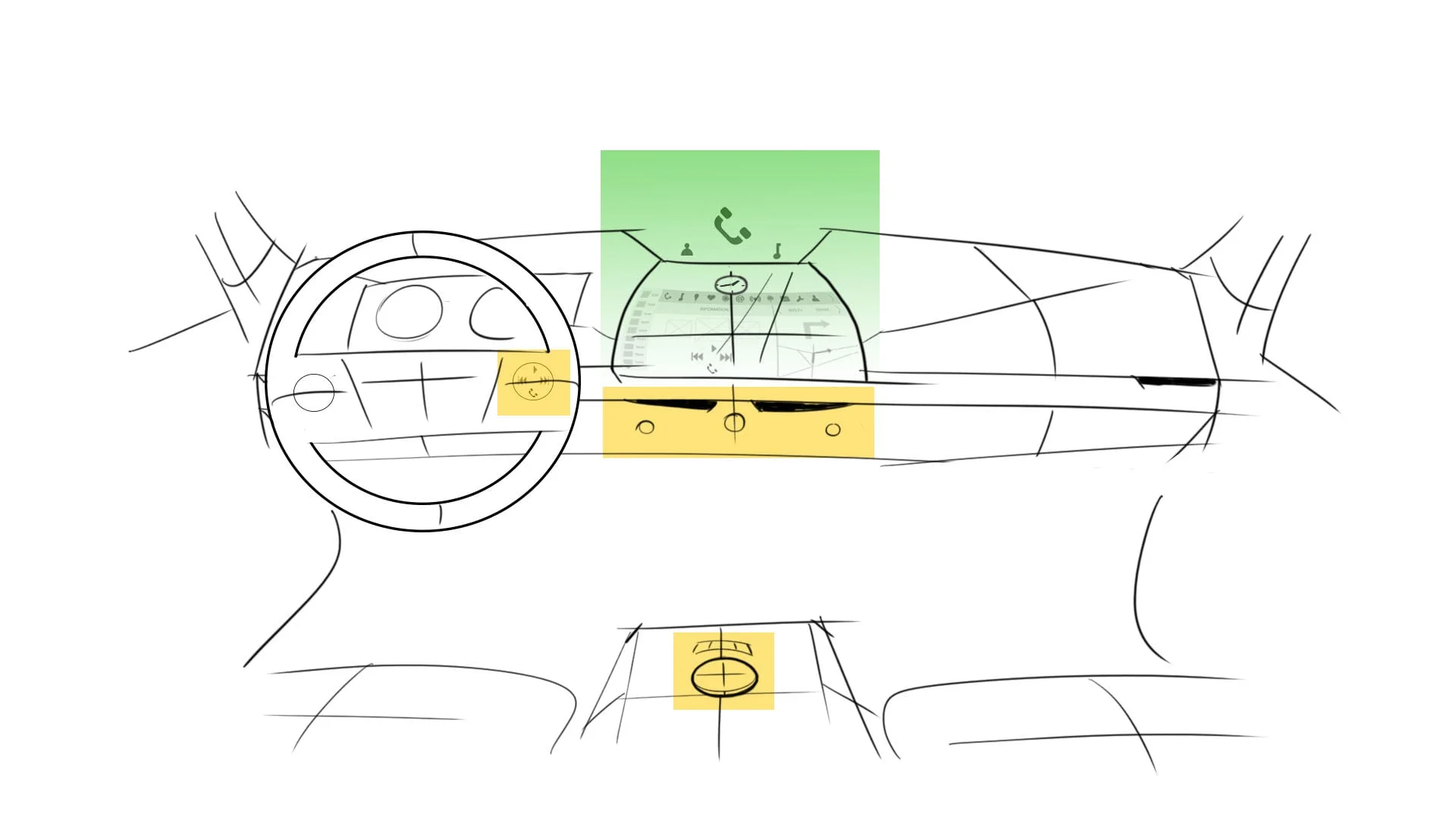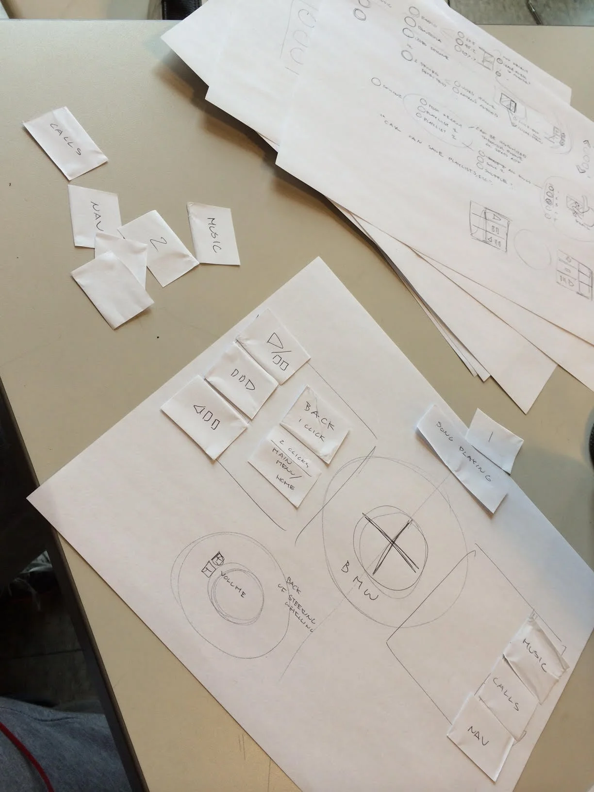 Coming up with concepts while researching like the possibility for augmented reality and a smart dashboard. The ability for your dashboard to mirror your mobile devices and create a seamless experience. A way to customize your car from your tablet and simply improving interactions and controls while prioritizing safety and driving.
