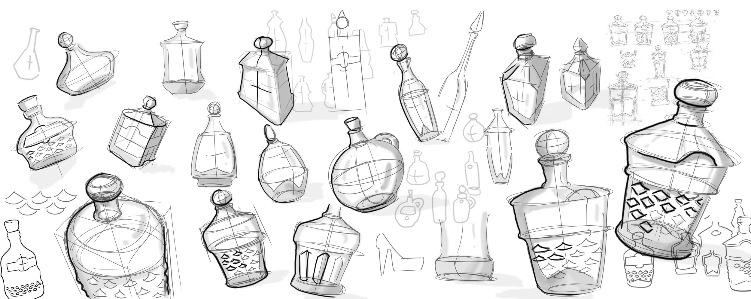 When entering a bar, I noticed a bunch of bottles stacked next to each other, making it hard to distinguish one from another. This observation made me remember the streets of New York and how crowded they always seem, yet someone can always stand out if they decide to wear certain things like nice suits, flashy accessories, bright colors, etc... I used this thought to design my bottle so it could stand out with its elegance when next to others and got inspired to create shapes in the bottle that reflected more light from the glass.