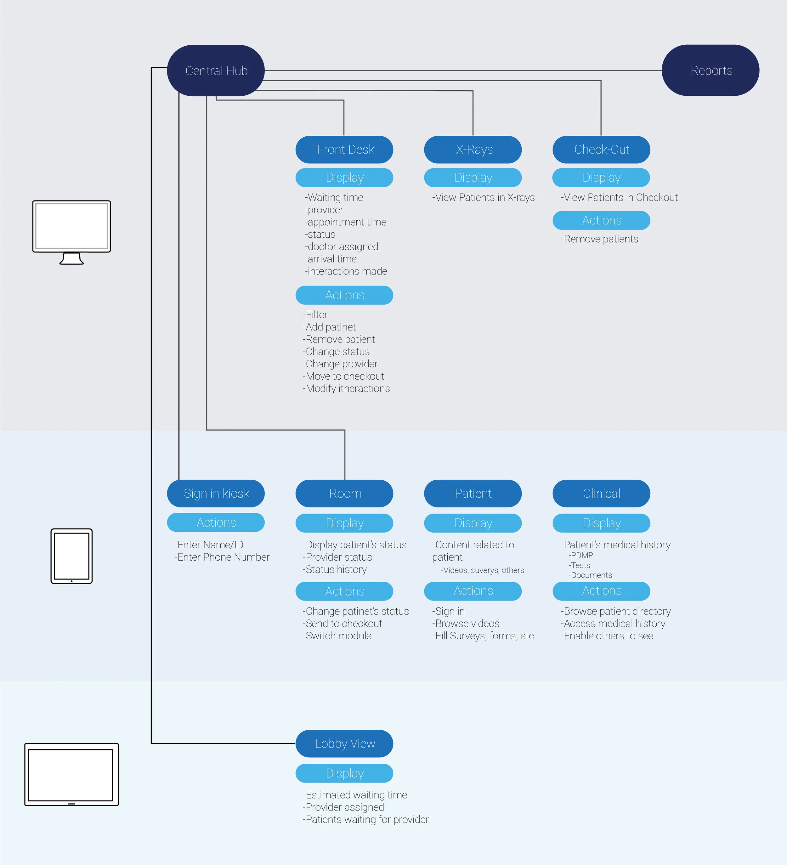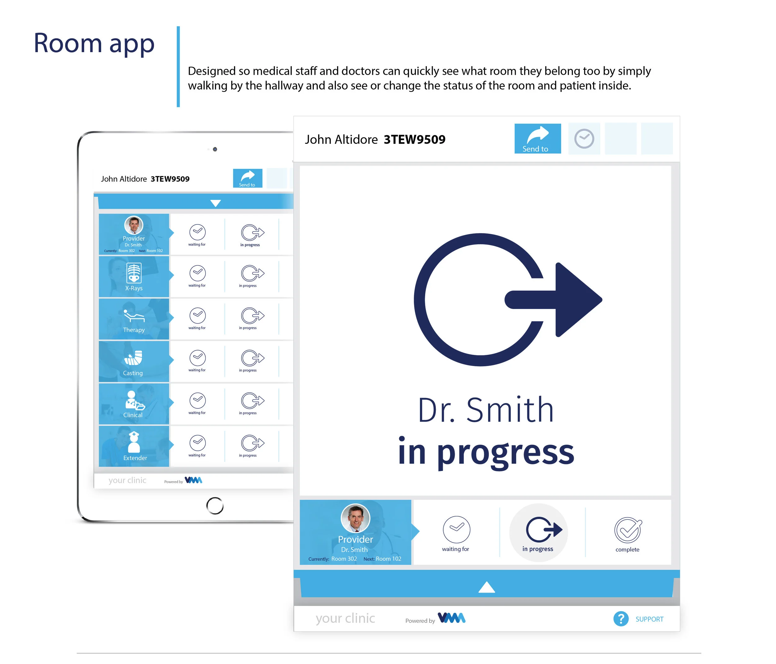 assign a new doctor to a patient or see patients in different rooms or stages of their visit.